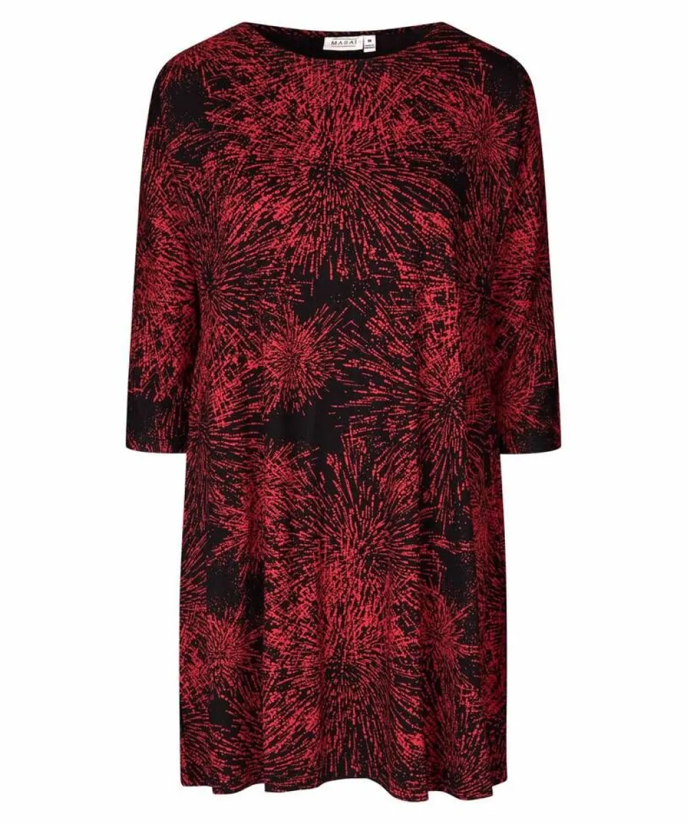 A-linjainen tunika punaisella ilotulituskuosilla. Joustavassa tunikassa on vajaamittaiset 3/4-hihat.Lisää tietojaA-sha…