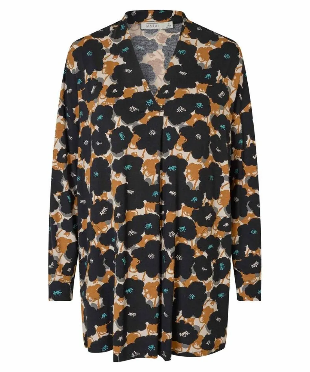 Joustava A-linjainen tunika tyylikkäällä kukkakuosilla. Tunikassa on V-pääntie ja kaunis laskos etupuolella.Lisää…