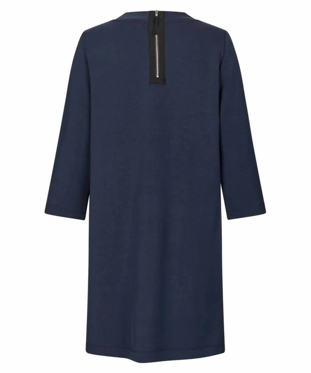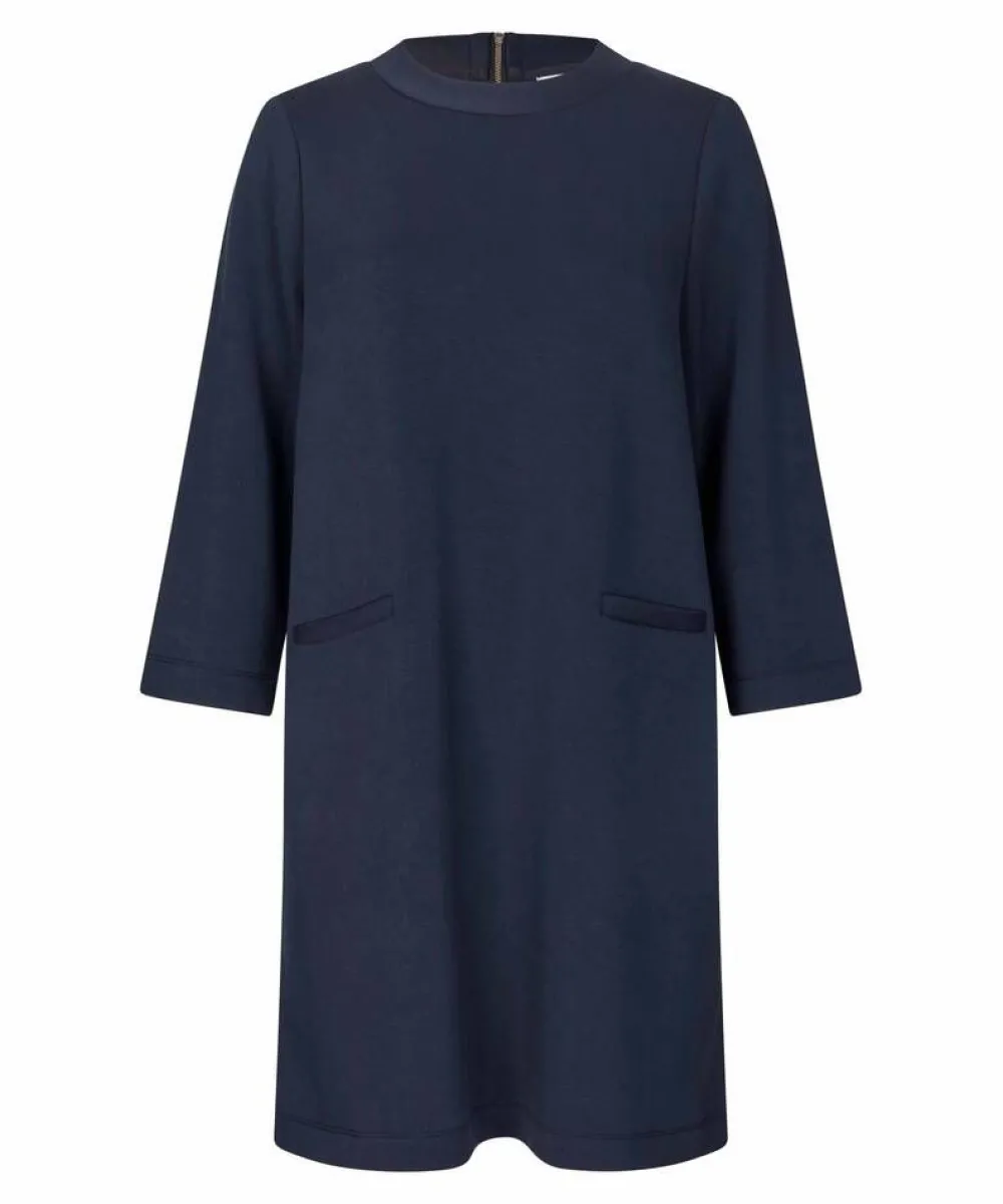 Siisti tummansininen tunika pehmeää ja napakkaa jersey-kangasta. Korkea pääntie, 3/4-hihat ja edessä taskuyksityisk…