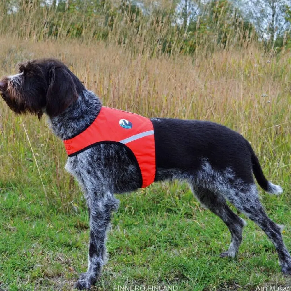 | Suunniteltu ensisijaisesti metsästyskoirille- Soveltuu myös päivittäiseen ulkoiluun- Punainen ja keltainen kylki auttavat hahmottamaan koiran asennon- Tarrakiinnitys kaulalla ja rintakehällä- Jousto-osuus pääntiessä (koossa M ja L)- Pehmeä kanttaus reunoissa- Painetut 3D-heijastimet kyljissä, heijastintere selän päällä- UV-suojattu kangas |