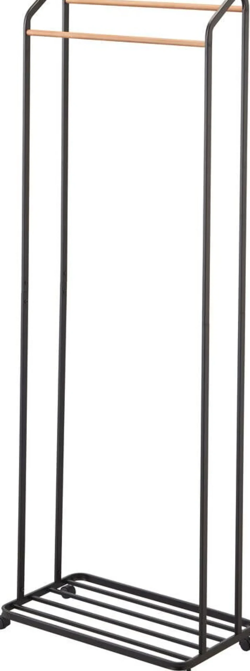 Yamazakin tilava ja käytännöllinen Tower-vaaterekki on varustettu pyörillä ja siinä on kaksi kaunista puutankoa va…
