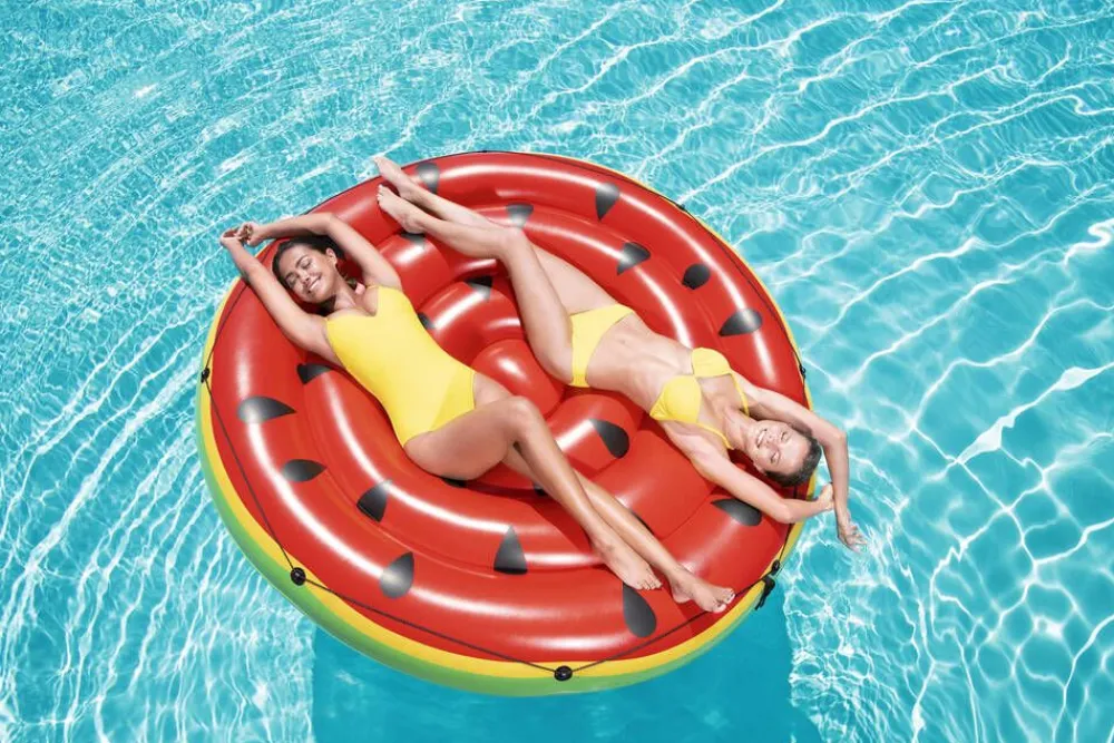 Raikkaan punaisen vesimelonilautan halkaisija on 188 cm. Painoraja 90 kg. Pakkaus sisältää ilmalla täytettävän lau…