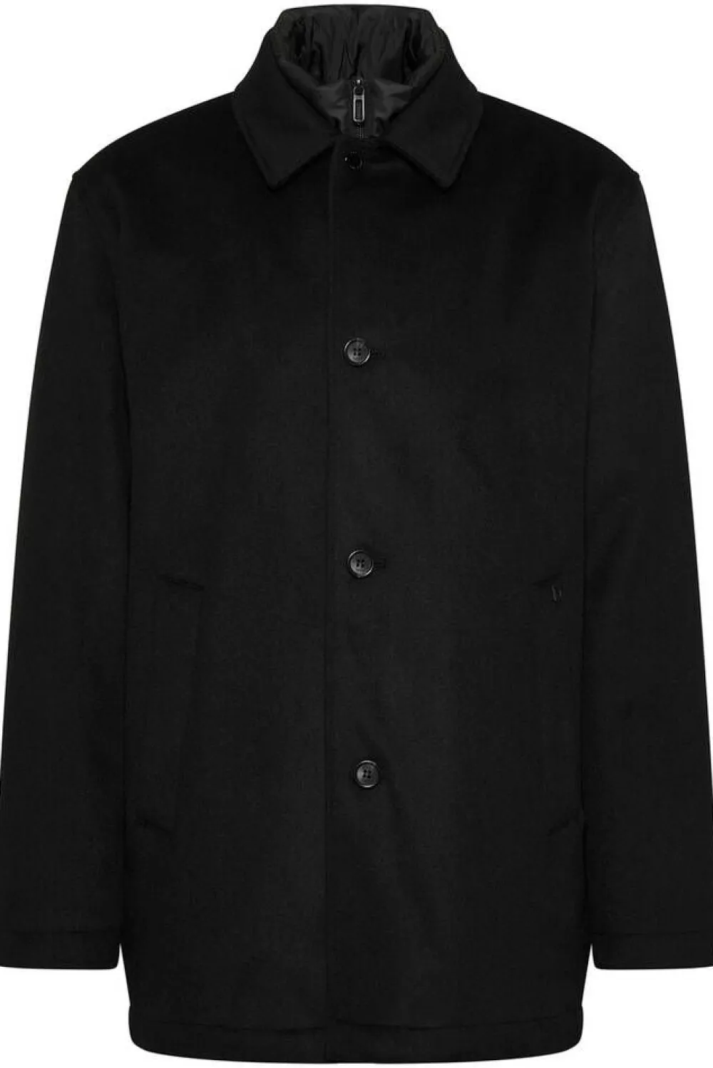 Klassisen tyylikäs villakangastakki, jossa on vedenpitävä ja hengittävä kangas ja vetoketjulla irrotettava etulista…