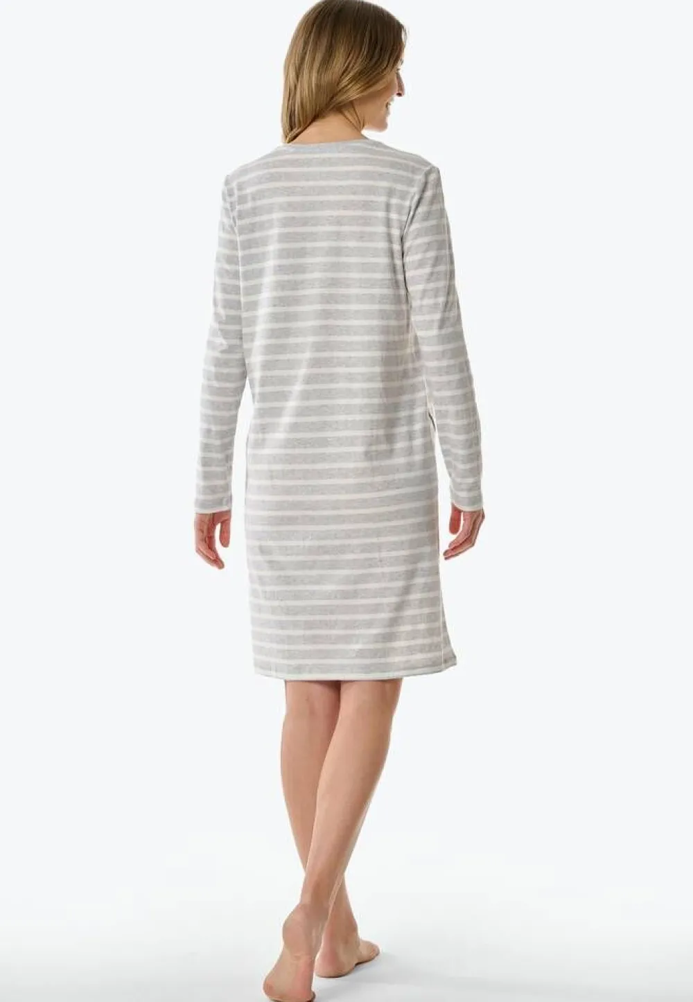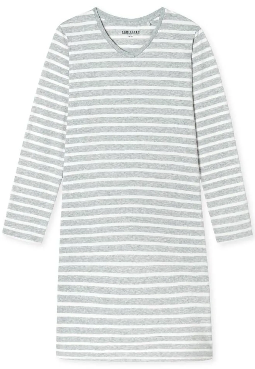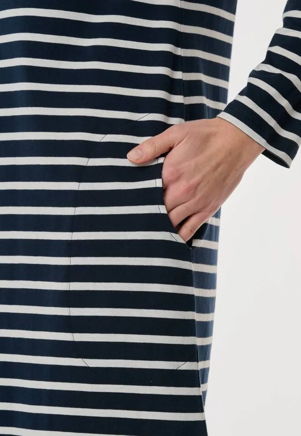 Raidallinen yöpaita V-pääntiellä ja pitkillä hihoilla. Vyötäröllä on kätevät avotaskut.Lisää tietojaKeskita…