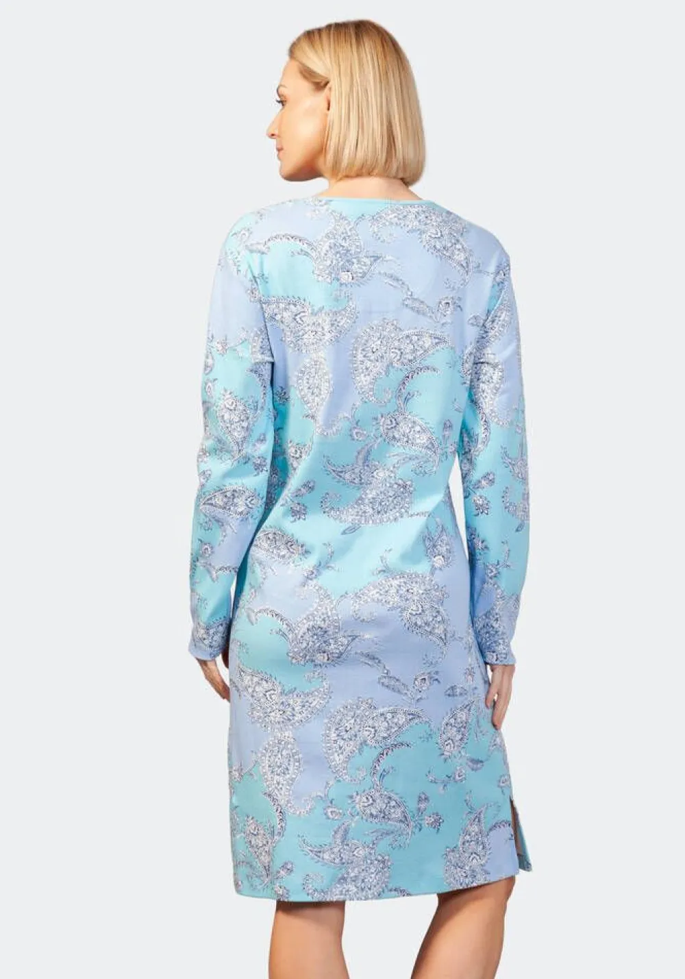 Hempeän värinen ja miellyttävä puuvillainen mekkoyöpaita klassisella paisleyprintillä pitkillä hihoilla.Lisää t…